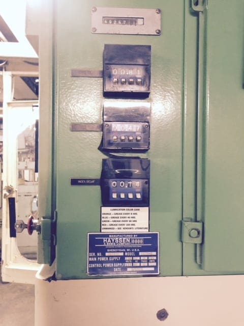 Used Hayssen 2125-S (1983) Blow Molder for Sale. This pre-owned Hayssen blow molding machine is located in The United States and available to be seen under power for an inspection. If you have any questions regarding this Hayssen Blow Molder, please feel free to contact us. You may Activate Pricing to view the price of this Plastic Molding Machine, or request a quote by clicking on the Inquire Now button.