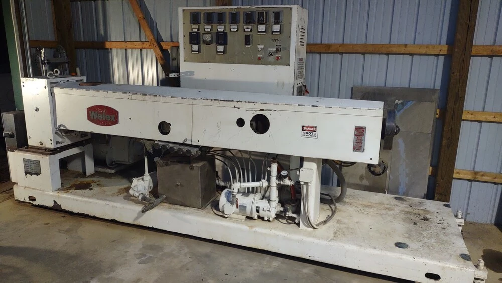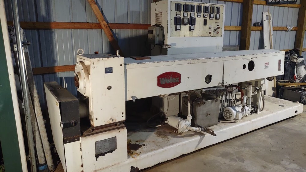 Used Welex 350 30:1 LH (1984) Extruder for Sale.  This pre-owned Welex plastic extruder is located in The United States and available to be seen under power for an inspection.  If you have any questions regarding this Welex Extruder, please feel free to contact us.  You may Activate Pricing to view the price of this Plastic Extrusion Machine, or request a quote by clicking on the Inquire Now button.