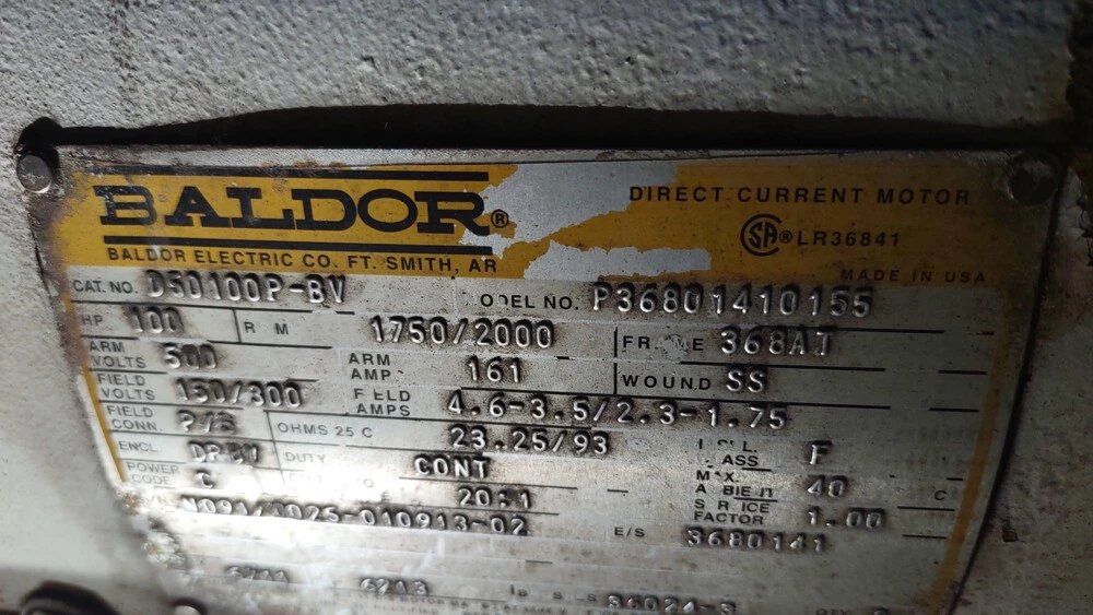 100 HP Baldor Motor at 1750/2000 RPM