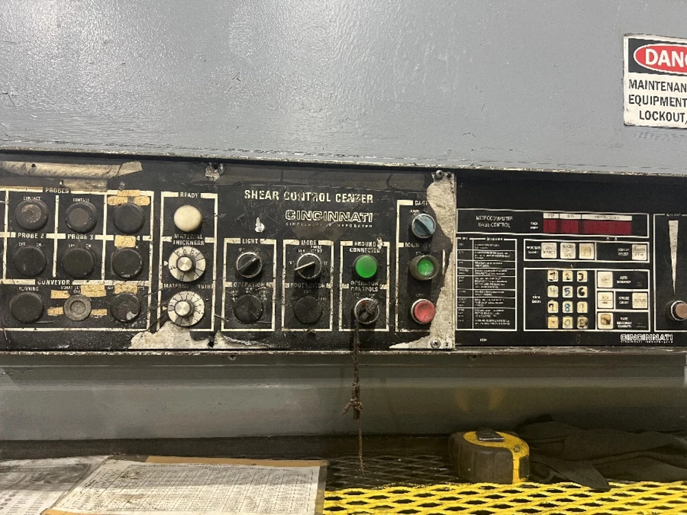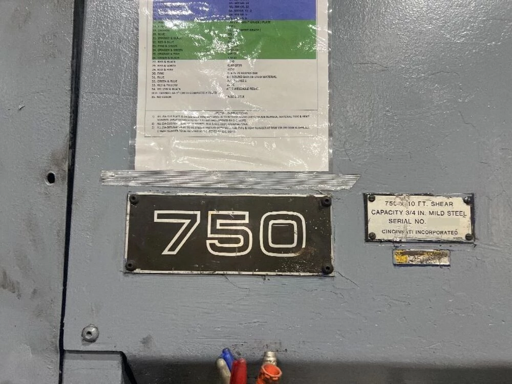 Used Cincinnati 750-10 (1987) Shear for Sale. This pre-owned Cincinnati shear is located in The United States and available to be seen under power for an inspection. If you have any questions regarding this Cincinnati Shear, please feel free to contact us. You may Activate Pricing to view the price of this CNC Machine, or request a quote by clicking on the Inquire Now button.