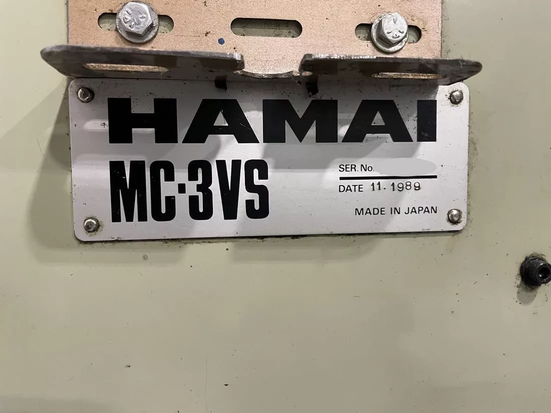 Used Hamai MC-3VC (1989) CNC Vertical Machining Center for Sale. This pre-owned Hamai CNC vertical mill is located in Canada and available to be seen under power for an inspection. If you have any questions regarding this Hamai Vertical Machining Center, please feel free to contact us. You may Activate Pricing to view the price of this CNC Machine, or request a quote by clicking on the Inquire Now button.