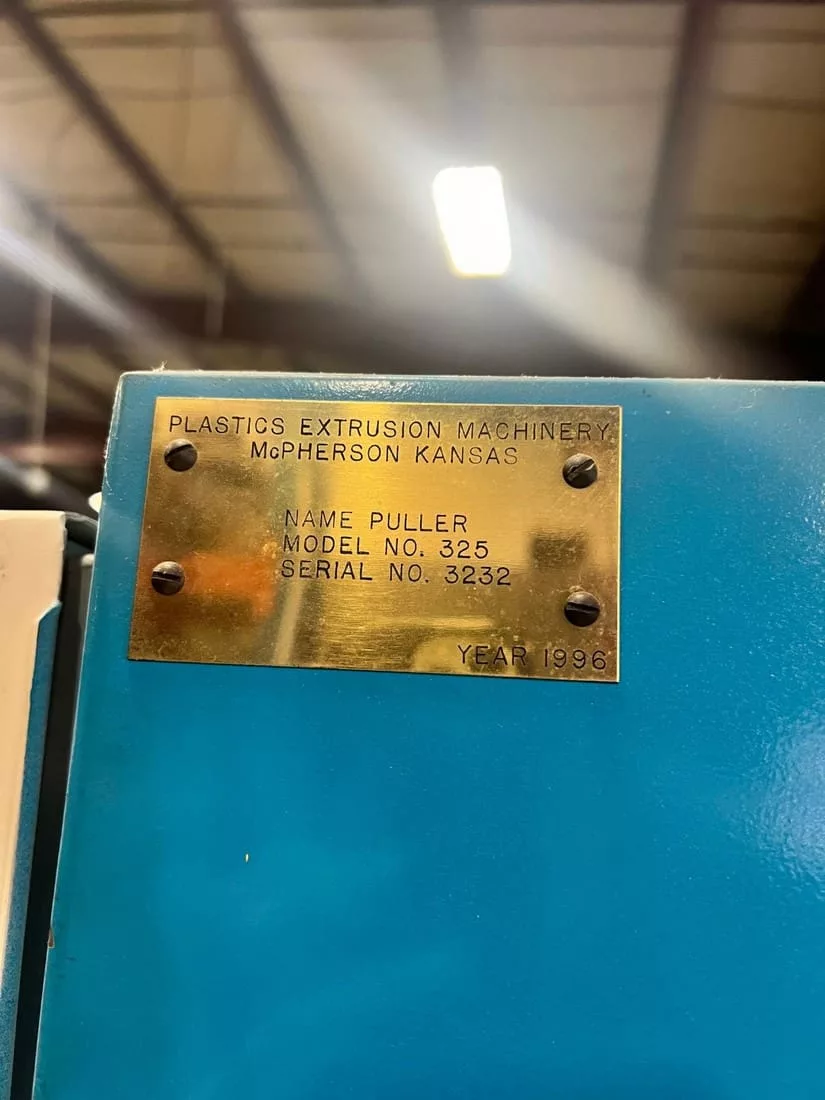 Used Plastic Extrusion Machinery 325 (1996) Extruder for Sale. This pre-owned Profile Puller plastic extruder is located in Massachusetts and available to be seen under power for an inspection. If you have any questions regarding this Plastic Extrusion Machinery Extruder, please feel free to contact us. You may Activate Pricing to view the price of this Plastic Extrusion Machine, or request a quote by clicking on the Inquire Now button