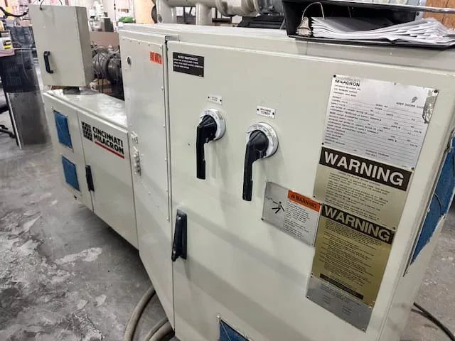 Used Cincinnati Milacron CM-55 (1997) Extruder for Sale. This pre-owned Cincinnati Milacron plastic extruder is located in The United States and available to be seen under power for an inspection. If you have any questions regarding this Cincinnati Milacron Extruder, please feel free to contact us. You may Activate Pricing to view the price of this Plastic Extrusion Machine, or request a quote by clicking on the Inquire Now button.