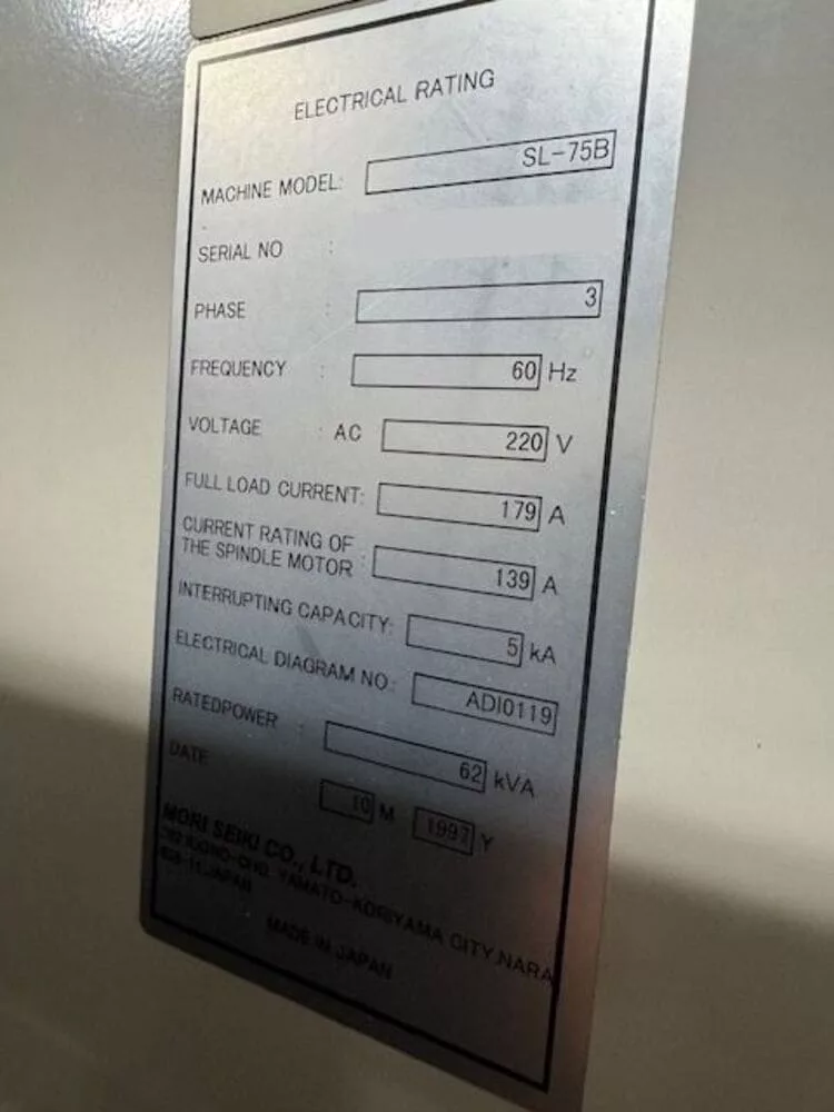 Used Mori Seiki SL-75B (1997) CNC Lathe for Sale.  This pre-owned Mori Seiki lathe is located in The United States and available to be seen under power for an inspection.  If you have any questions regarding this Mori Seiki Lathe, please feel free to contact us.  You may Activate Pricing to view the price of this CNC Machine, or request a quote by clicking on the Inquire Now button.