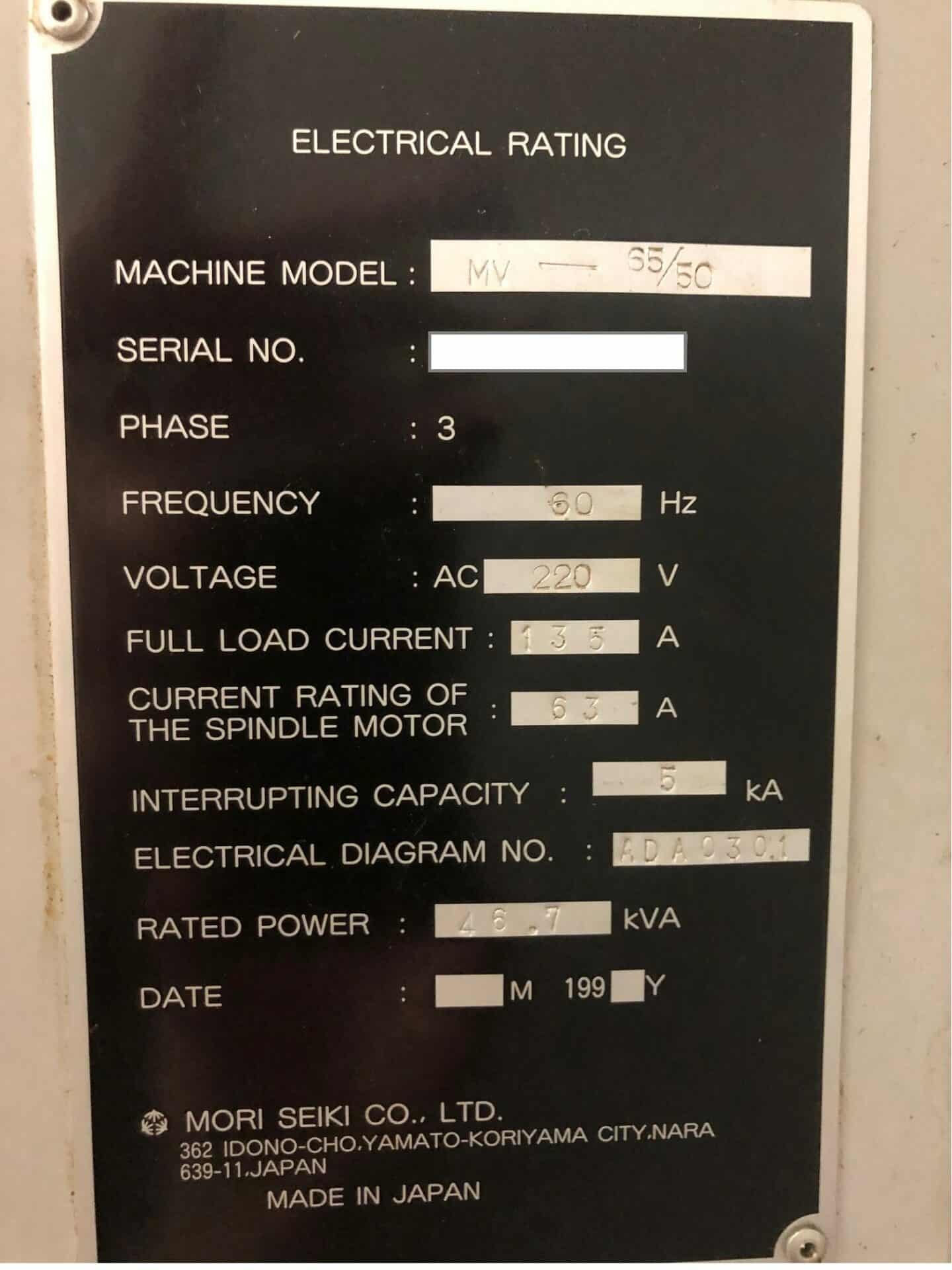 Used Mori Seiki MV-65/50 (1998) CNC Vertical Machining Center for Sale. This pre-owned Mori Seiki CNC vertical mill is located in The United States and available to be seen under power for an inspection. If you have any questions regarding this Mori Seiki Vertical Machining Center, please feel free to contact us. You may Activate Pricing to view the price of this CNC Machine, or request a quote by clicking on the Inquire Now button.