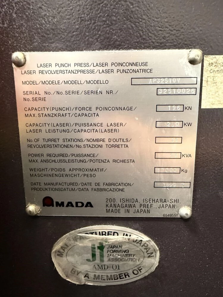 Used Amada Apelio III 2510V (1999) CNC Laser for Sale.  This pre-owned Amada CNC laser cutter is located in California and available to be seen under power for an inspection.  If you have any questions regarding this Amada Laser, please feel free to contact us.  You may Activate Pricing to view the price of this CNC Machine, or request a quote by clicking on the Inquire Now button.