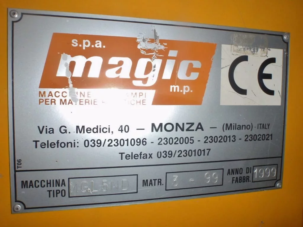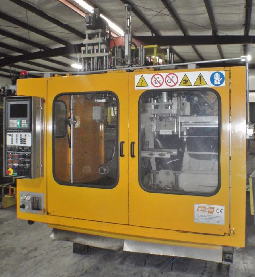 Used Magic MGL5ND (1999) Blow Molder for Sale. This pre-owned Magic blow molding machine is located in The United States and available to be seen under power for an inspection. If you have any questions regarding this Magic Blow Molder, please feel free to contact us. You may Activate Pricing to view the price of this Plastic Molding Machine, or request a quote by clicking on the Inquire Now button.