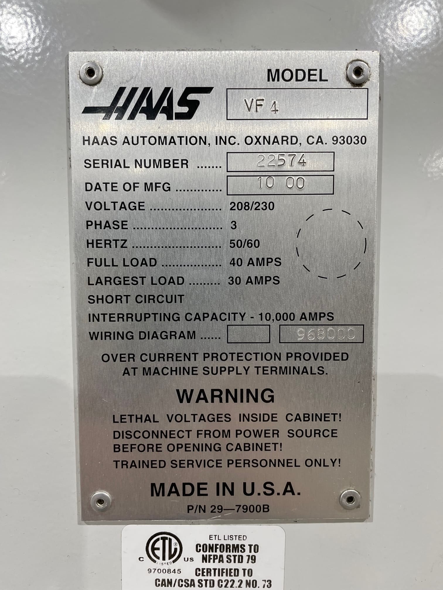 Used Haas VF-4 (2000) CNC Vertical Machining Center for Sale. This pre-owned Haas CNC vertical mill is located in Arizona and available to be seen under power for an inspection. If you have any questions regarding this Haas Vertical Machining Center, please feel free to contact us. You may Activate Pricing to view the price of this CNC Machine, or request a quote by clicking on the Inquire Now button.