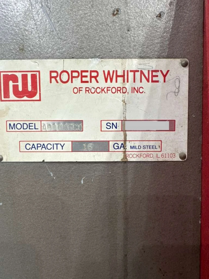 Used Roper Whitney AB1016 (2000) Folding Machine for Sale. This pre-owned Roper Whitney folding machine is located in The United States and available to be seen under power for an inspection. If you have any questions regarding this Roper Whitney Folding Machine, please feel free to contact us. You may Activate Pricing to view the price of this Fabrication Machine, or request a quote by clicking on the Inquire Now button.