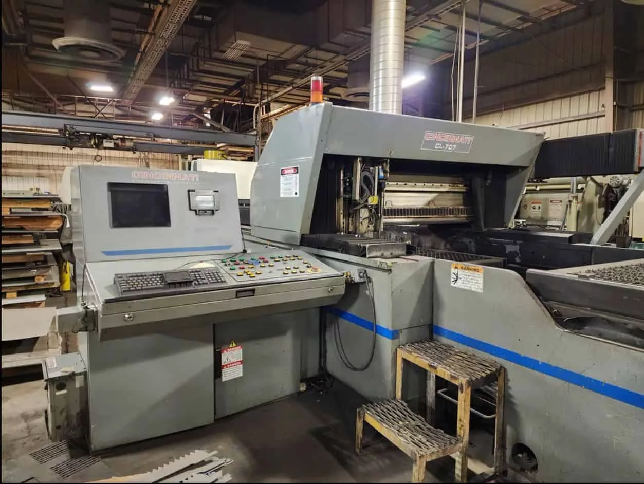 Used Cincinnati CL-707 (2001) CNC Laser for Sale.  This pre-owned Cincinnati CNC laser cutter is located in The United States and available to be seen under power for an inspection.  If you have any questions regarding this Cincinnati Laser, please feel free to contact us.  You may Activate Pricing to view the price of this CNC Machine, or request a quote by clicking on the Inquire Now button.