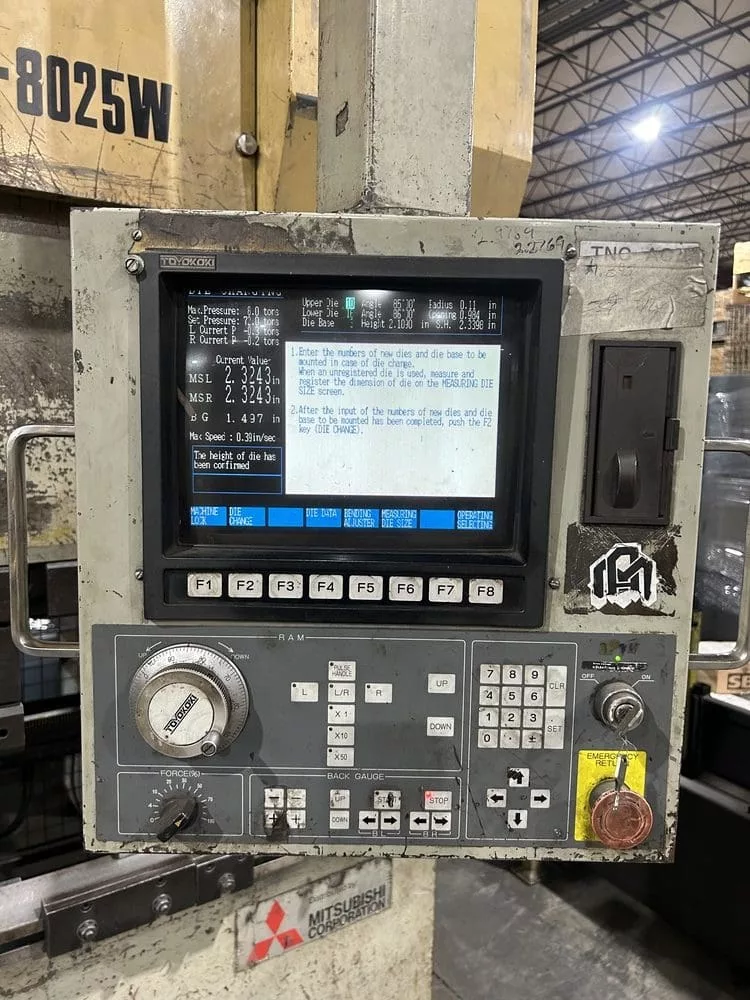 Used Toyokoki APB 8025W (2001) CNC Press Brake for Sale.  This pre-owned Toyokoki CNC press brake is located in The United States.  If you have any questions regarding this Toyokoki Press Brake, please feel free to contact us.  You may Activate Pricing to view the price of this CNC Machine, or request a quote by clicking on the Inquire Now button.