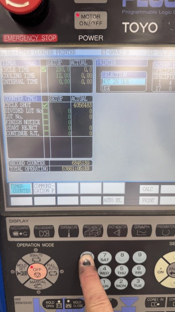 Used Toyo ET-90VR2 (2007) Injection Molding Machine for Sale.  This pre-owned Toyo plastic injection molding machine is located in The United States and available to be seen under power for an inspection.  If you have any questions regarding this Toyo Injection Molding Machine, please feel free to contact us.  You may Activate Pricing to view the price of this Plastic Molding Machine, or request a quote by clicking on the Inquire Now button.