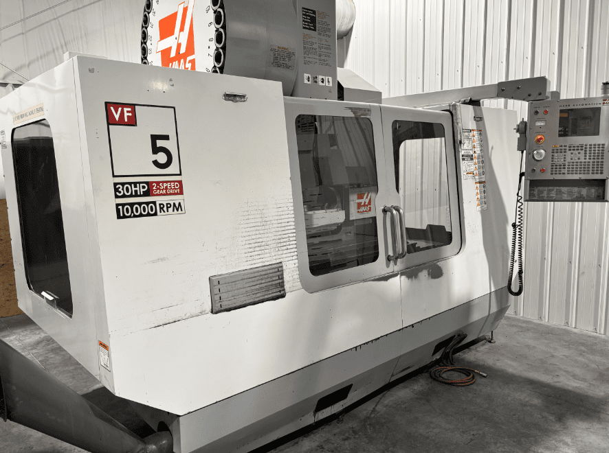 Used Haas VF-5 (2005) CNC Vertical Machining Center for Sale. This pre-owned Haas CNC vertical mill is located in The United States and available to be seen under power for an inspection. If you have any questions regarding this Haas Vertical Machining Center, please feel free to contact us. You may Activate Pricing to view the price of this CNC Machine, or request a quote by clicking on the Inquire Now button.