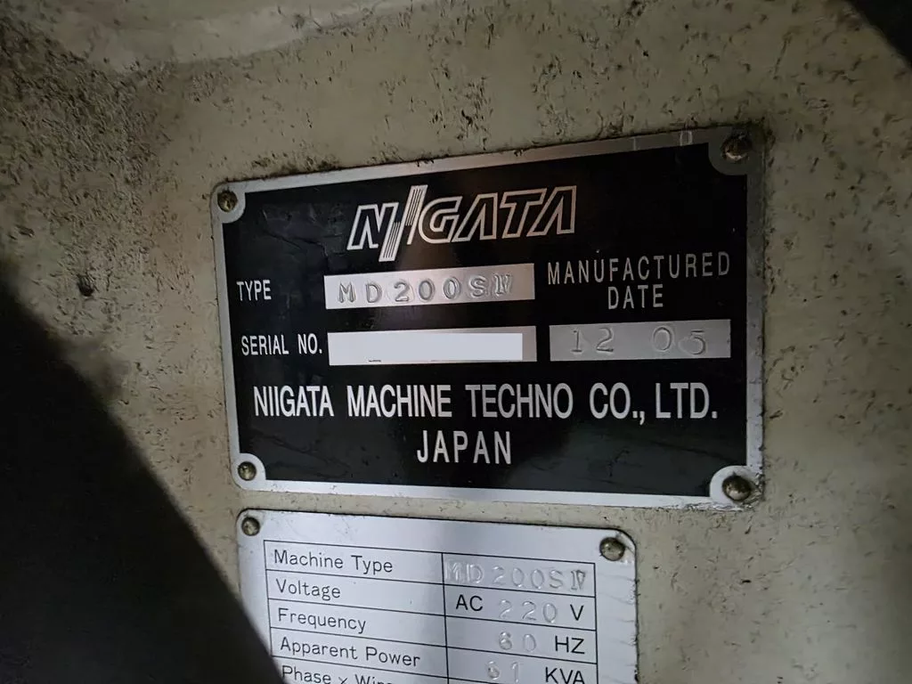 Used Niigata MD200S-IV (2005) Injection Molding Machine for Sale. This pre-owned Niigata plastic injection molding machine is located in The United States and available to be seen under power for an inspection. If you have any questions regarding this Niigata Injection Molding Machine, please feel free to contact us. You may Activate Pricing to view the price of this Plastic Molding Machine, or request a quote by clicking on the Inquire Now button.
