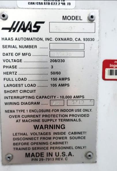 Used Haas SL-40T (2006) CNC Lathe for Sale. This pre-owned Haas CNC lathe is located in The United States and available to be seen under power for an inspection. If you have any questions regarding this Haas Lathe, please feel free to contact us. You may Activate Pricing to view the price of this CNC Machine, or request a quote by clicking on the Inquire Now button.