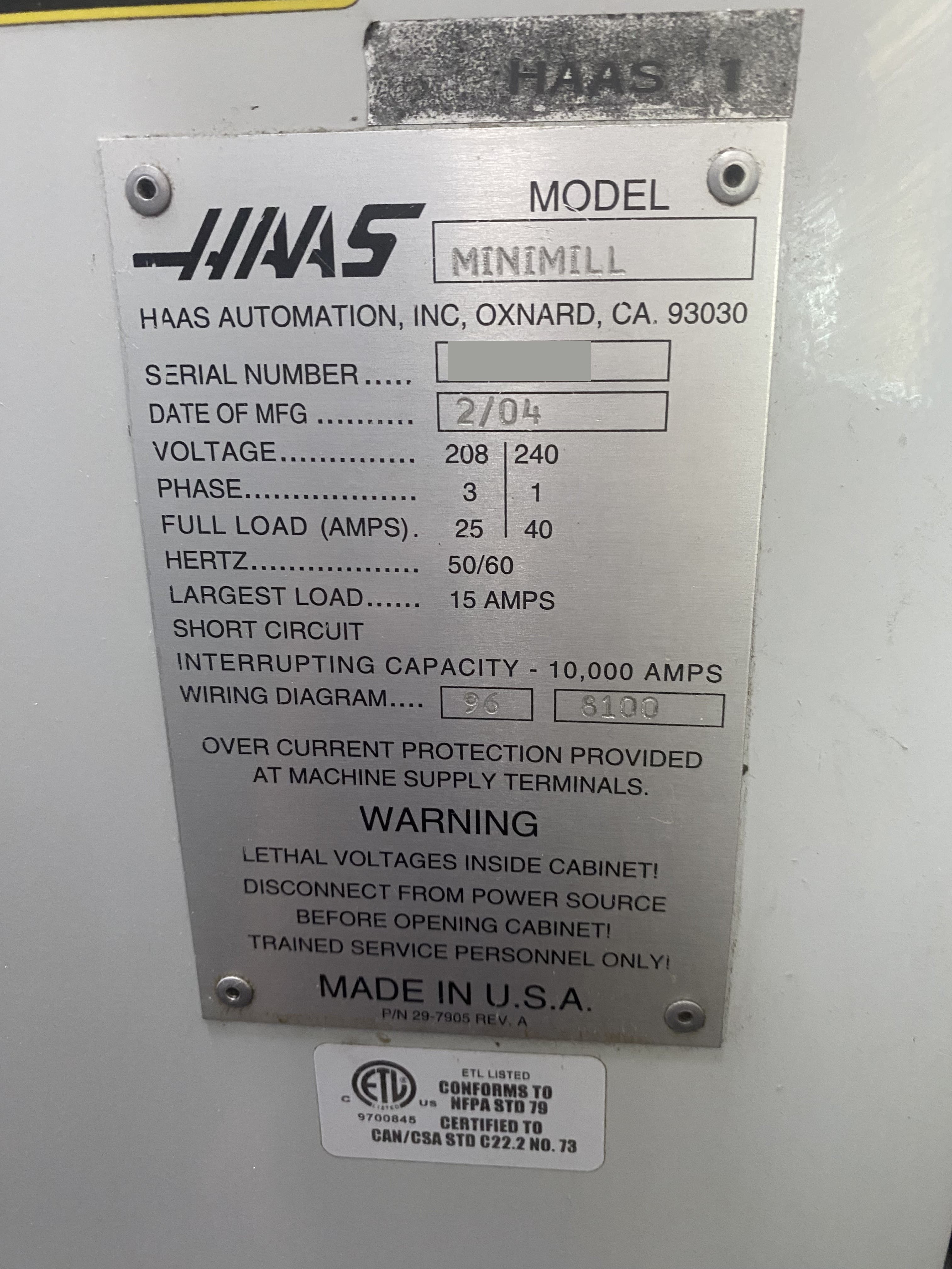 Used Haas Mini Mill (2004) CNC Vertical Machining Center for Sale. This pre-owned Haas CNC vertical mill is located in The United States and available to be seen under power for an inspection. If you have any questions regarding this Haas Vertical Machining Center, please feel free to contact us. You may Activate Pricing to view the price of this CNC Machine, or request a quote by clicking on the Inquire Now button.