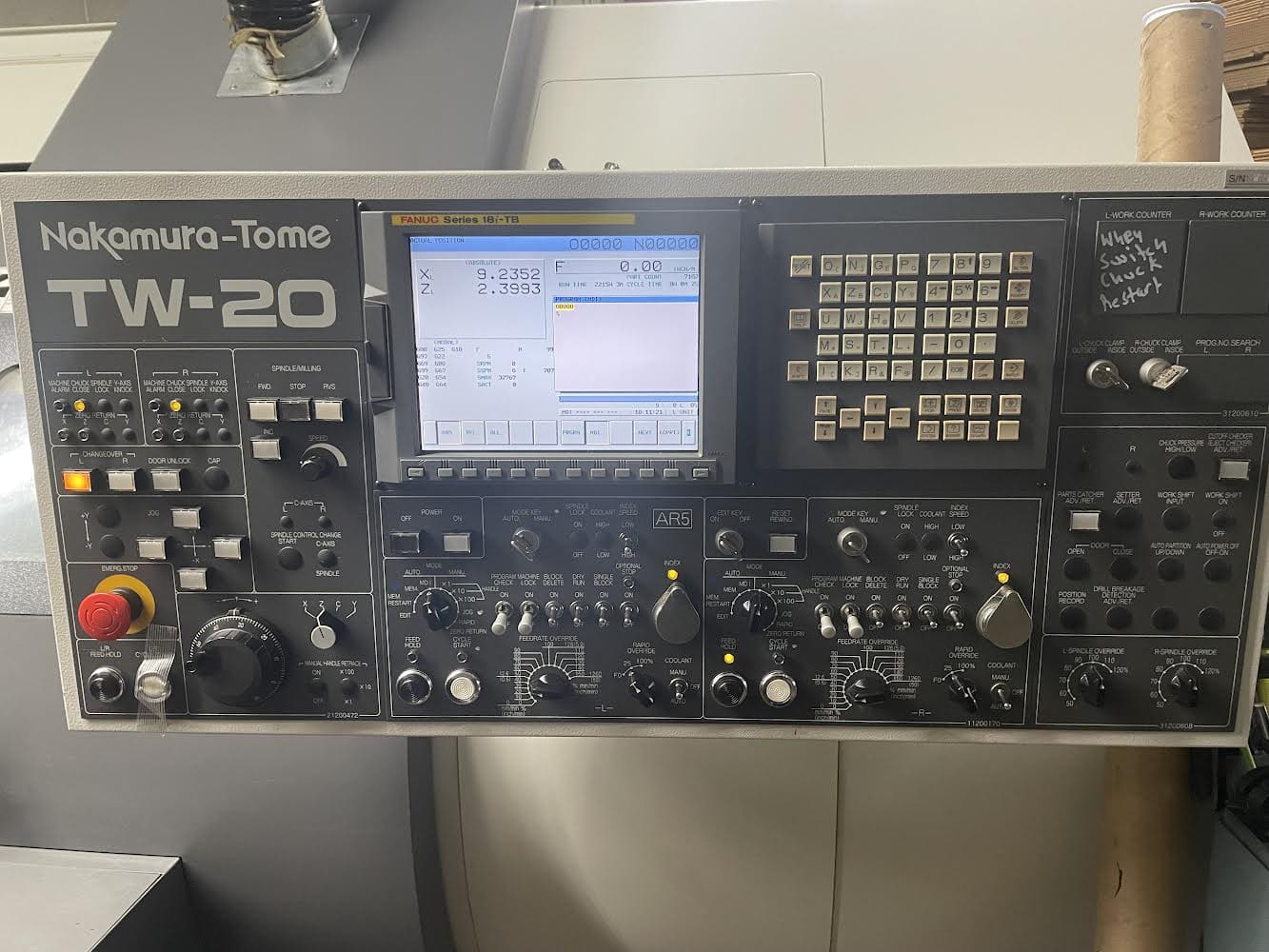 Used Nakamura-Tome TW-20 (2009) CNC Lathe for Sale. This pre-owned Nakamura-Tome CNC lathe is located in Arizona and available to be seen under power for an inspection. If you have any questions regarding this Nakamura-Tome Lathe, please feel free to contact us. You may Activate Pricing to view the price of this CNC Machine, or request a quote by clicking on the Inquire Now button.