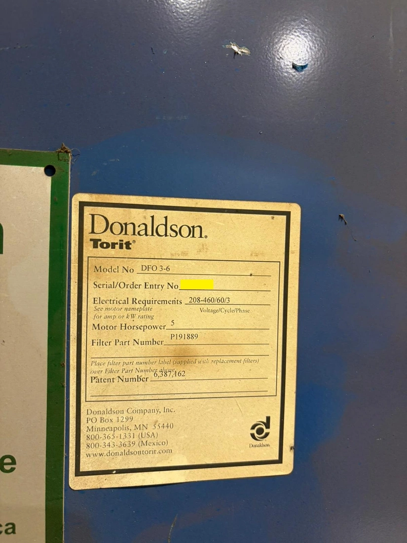 Dust Collector Donaldson Torit DF0 3-6 |