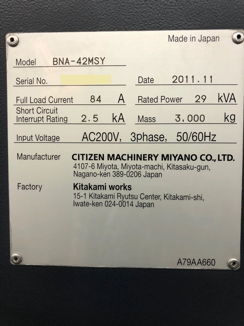 Used Miyano BNA-42MSY (2011) CNC Lathe for Sale. This pre-owned Miyano CNC lathe is located in The United States and available to be seen under power for an inspection. If you have any questions regarding this Miyano Lathe, please feel free to contact us. You may Activate Pricing to view the price of this CNC Machine, or request a quote by clicking on the Inquire Now button.