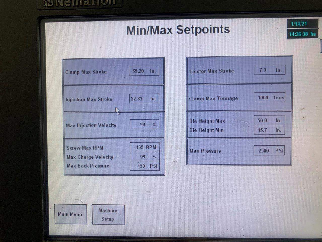 1000 Ton 148 oz Shot Size Injection Molding Machine |