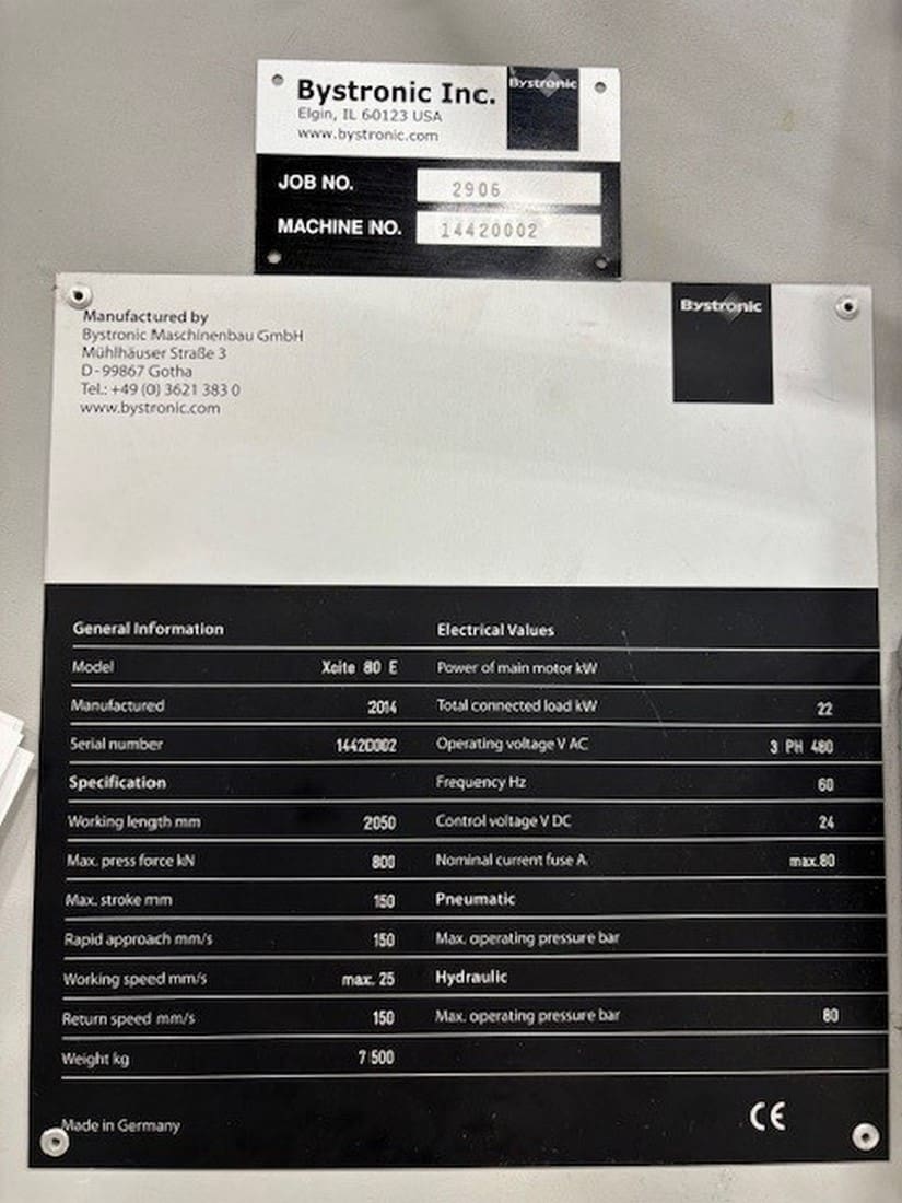 Used Bystronic Xcite 80E (2014) CNC Press Brake for Sale. This pre-owned Bystronic CNC press brake is located in Wisconsin. If you have any questions regarding this Bystronic Press Brake, please feel free to contact us. You may Activate Pricing to view the price of this CNC Machine, or request a quote by clicking on the Inquire Now button.