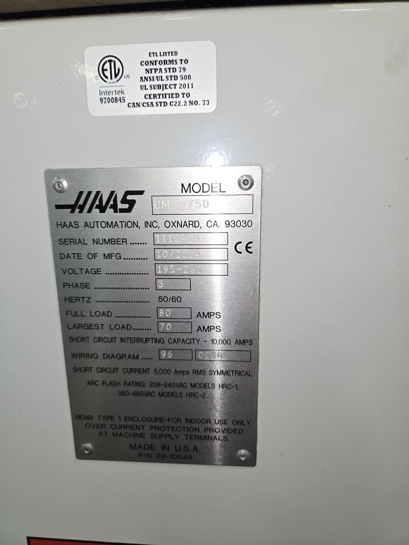Used Haas UMC-750 (2014) CNC Vertical Machining Center for Sale. This pre-owned Haas CNC vertical mill is located in Texas and available to be seen under power for an inspection. If you have any questions regarding this Haas Vertical Machining Center, please feel free to contact us. You may Activate Pricing to view the price of this CNC Machine, or request a quote by clicking on the Inquire Now button.