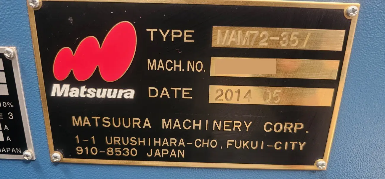 Used Matsuura MAM72-35V (2014) CNC Vertical Machining Center for Sale. This pre-owned Matsuura CNC vertical mill is located in The United States and available to be seen under power for an inspection. If you have any questions regarding this Matsuura Vertical Machining Center, please feel free to contact us. You may Activate Pricing to view the price of this CNC Machine, or request a quote by clicking on the Inquire Now button.