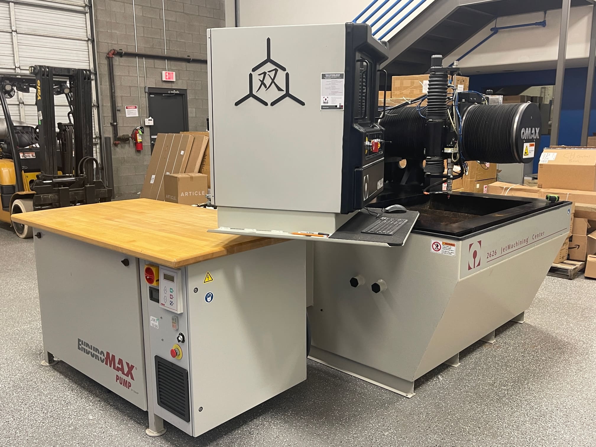 Used Omax 2626 (2014) CNC Waterjet for Sale. This pre-owned Omax CNC waterjet is located in Arizona. If you have any questions regarding this Omax Waterjet, please feel free to contact us. You may Activate Pricing to view the price of this CNC Machine, or request a quote by clicking on the Inquire Now button.