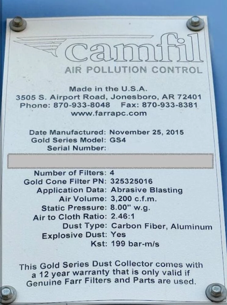 Used Camfil Gold Series GS4 (2015) Dust Collector for Sale.  This pre-owned Camfil dust collector is located in The United States and available to be seen under power for an inspection.  If you have any questions regarding this Camfil Dust Collector, please feel free to contact us.  You may Activate Pricing to view the price of this air compressor, or request a quote by clicking on the Inquire Now button.