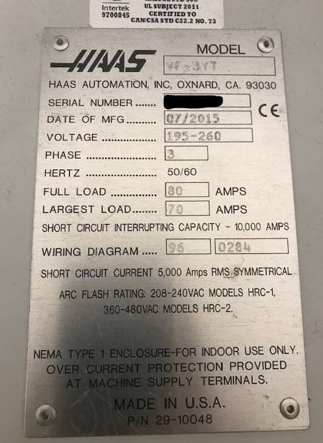 Used Haas VF-3YT (2015) CNC Vertical Machining Center for Sale. This pre-owned Haas CNC vertical mill is located in The United States and available to be seen under power for an inspection. If you have any questions regarding this Haas Vertical Machining Center, please feel free to contact us. You may Activate Pricing to view the price of this CNC Machine, or request a quote by clicking on the Inquire Now button.