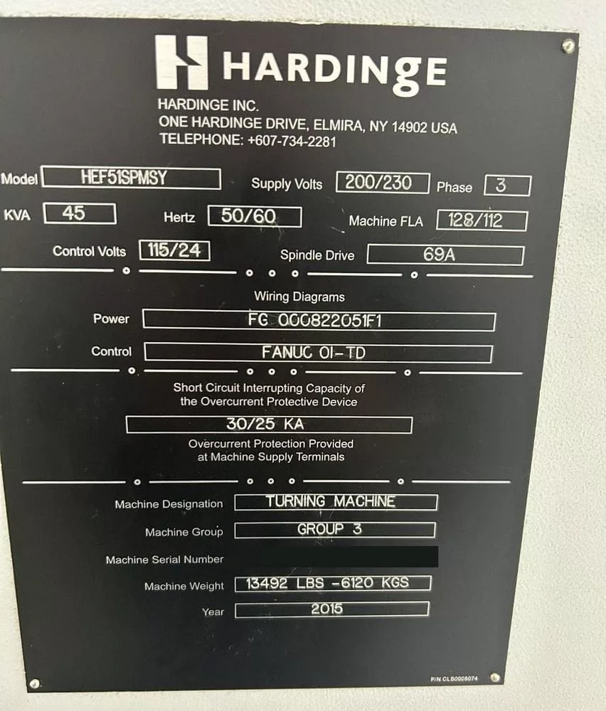 Used Hardinge H51MSY (2015) CNC Lathe for Sale. This pre-owned Hardinge CNC lathe is located in The United States and available to be seen under power for an inspection. If you have any questions regarding this Hardinge Lathe, please feel free to contact us. You may Activate Pricing to view the price of this CNC Machine, or request a quote by clicking on the Inquire Now button.