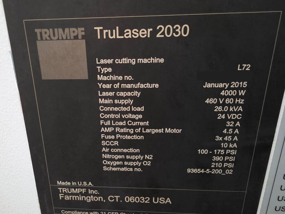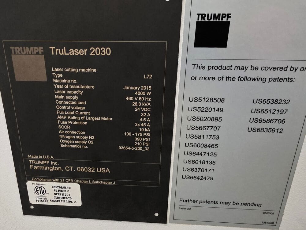 Used Trumpf Trulaser 2030 (2015) CNC Laser for Sale.  This pre-owned Trumpf CNC laser cutter is located in The United States and available to be seen under power for an inspection.  If you have any questions regarding this Trumpf Laser, please feel free to contact us.  You may Activate Pricing to view the price of this CNC Machine, or request a quote by clicking on the Inquire Now button.