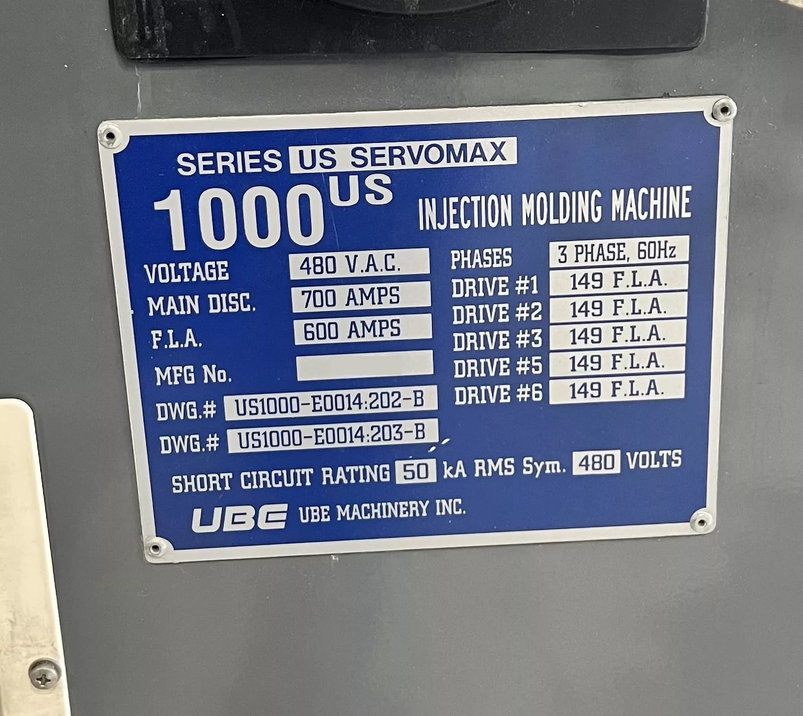 1,000 Ton 147 oz Shot Size Injection Molding Machine |