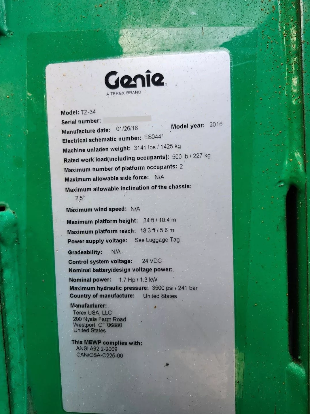 Used Genie TZ-34/20 (2016) Boom Lift for Sale.  This pre-owned Genie Articulated Boom Lift is located in Canada.  If you have any questions regarding this Genie Boom Lift, please feel free to contact us.  You may Activate Pricing to view the price of this Excavator or request a quote by clicking on the Inquire Now button.