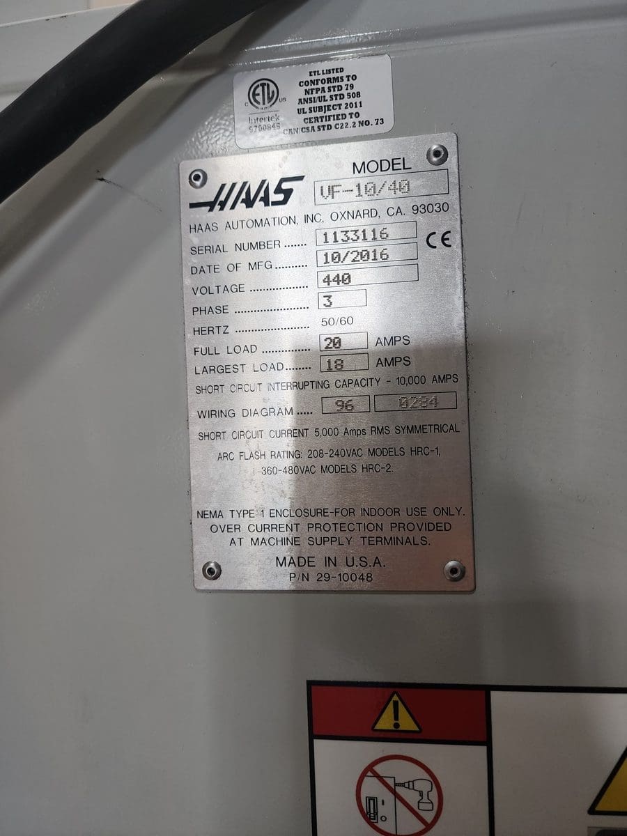 Used Haas VF-10 (2016) CNC Vertical Machining Center for Sale. This pre-owned Haas CNC vertical mill is located in Arizona and available to be seen under power for an inspection. If you have any questions regarding this Haas Vertical Machining Center, please feel free to contact us. You may Activate Pricing to view the price of this CNC Machine, or request a quote by clicking on the Inquire Now button.