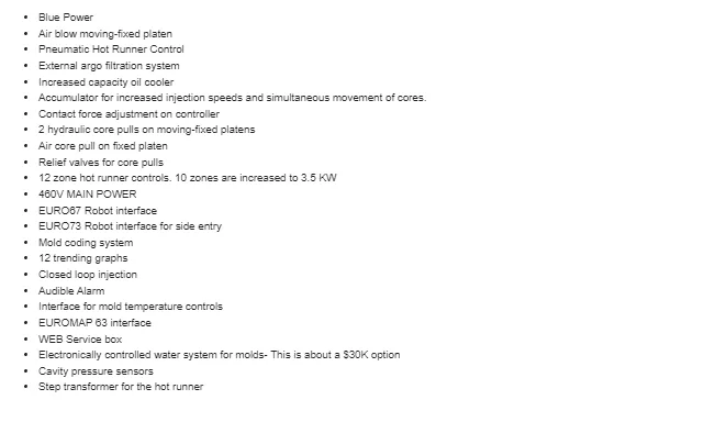 330 Ton 13.6 oz Shot Size Injection Molding Machine |