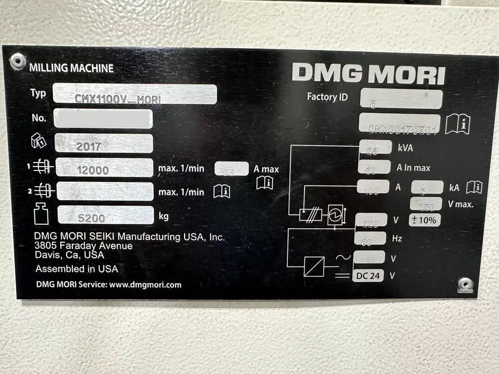 Used DMG Mori CMX 1100V (2017) CNC Vertical Machining Center for Sale. This pre-owned DMG Mori CNC vertical mill is located in The United States and available to be seen under power for an inspection. If you have any questions regarding this DMG Mori Vertical Machining Center, please feel free to contact us. You may Activate Pricing to view the price of this CNC Machine, or request a quote by clicking on the Inquire Now button.