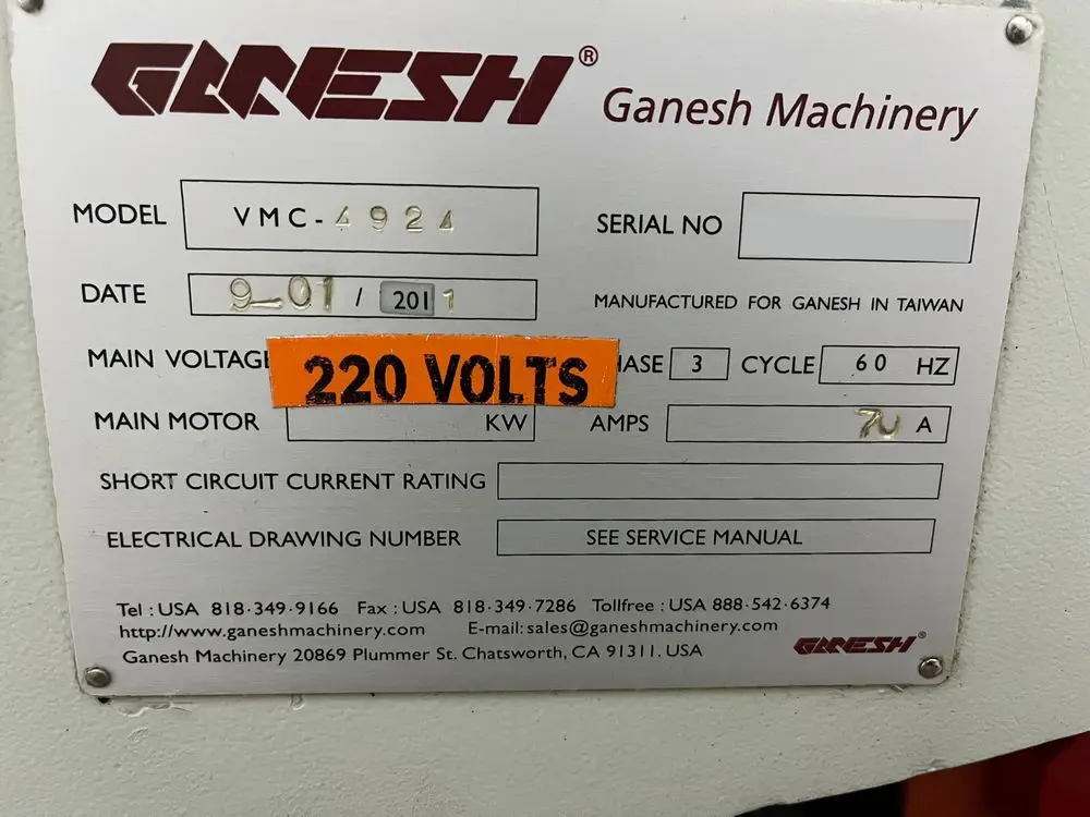 Used Ganesh VMC 4924 (2017) CNC Vertical Machining Center for Sale. This pre-owned Ganesh CNC vertical mill is located in The United States and available to be seen under power for an inspection. If you have any questions regarding this Ganesh Vertical Machining Center, please feel free to contact us. You may Activate Pricing to view the price of this CNC Machine, or request a quote by clicking on the Inquire Now button.