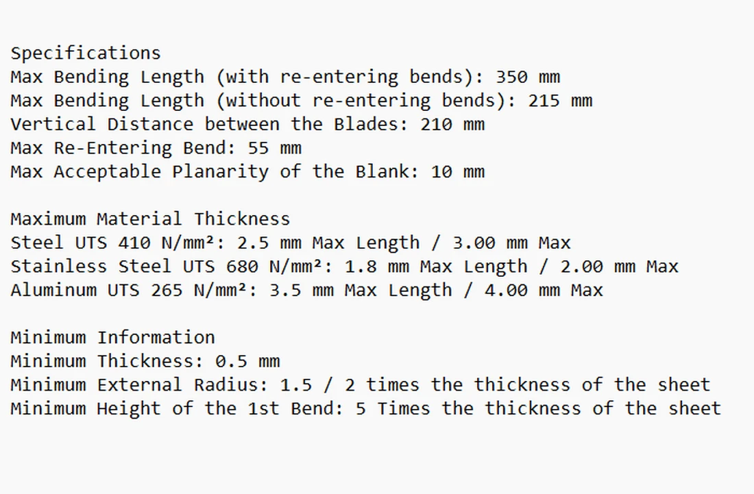 | Max Bending Width between Bends |
