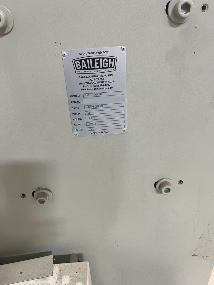 Used Baileigh SH 10010 (2019) Shear for Sale. This pre-owned Baileigh shear is located in The United States and available to be seen under power for an inspection. If you have any questions regarding this Baileigh Shear, please feel free to contact us. You may Activate Pricing to view the price of this CNC Machine, or request a quote by clicking on the Inquire Now button.