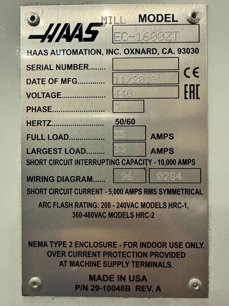 Used Haas EC-1600ZT (2019) CNC Horizontal Machining Center for Sale. This pre-owned Haas CNC horizontal mill is located in The United States and available to be seen under power for an inspection. If you have any questions regarding this Haas Horizontal Machining Center, please feel free to contact us. You may Activate Pricing to view the price of this CNC Machine, or request a quote by clicking on the Inquire Now button!