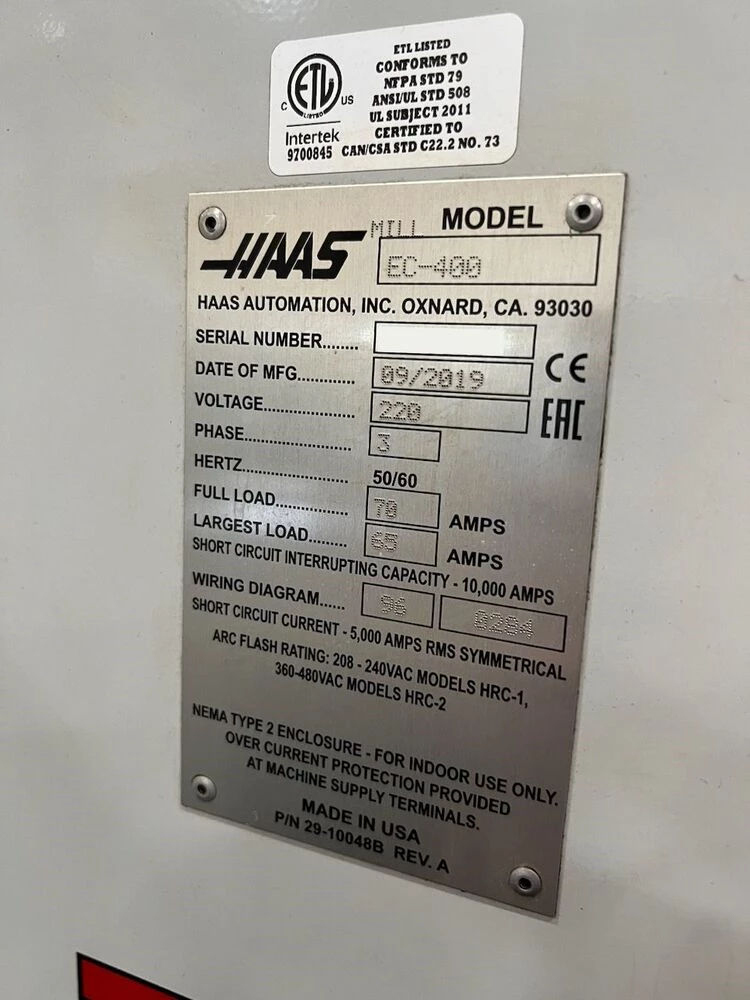 Used Haas EC-400PP (2019) CNC Horizontal Machining Center for Sale. This pre-owned Haas CNC horizontal mill is located in The United States and available to be seen under power for an inspection. If you have any questions regarding this Haas Horizontal Machining Center, please feel free to contact us. You may Activate Pricing to view the price of this CNC Machine, or request a quote by clicking on the Inquire Now button.