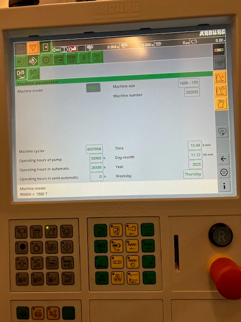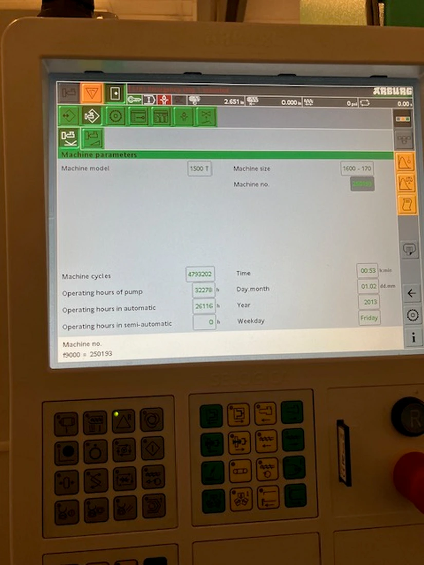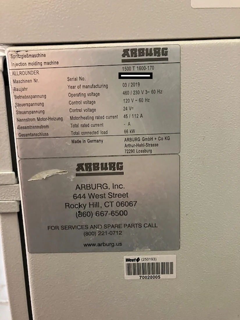 Used Arburg 1500T 1600-170 (2020) Injection Molding Machine for Sale.  This pre-owned Arburg plastic injection molding machine is located in The United States and available to be seen under power for an inspection.  If you have any questions regarding this Arburg Injection Molding Machine, please feel free to contact us.  You may Activate Pricing to view the price of this Plastic Molding Machine, or request a quote by clicking on the Inquire Now button.