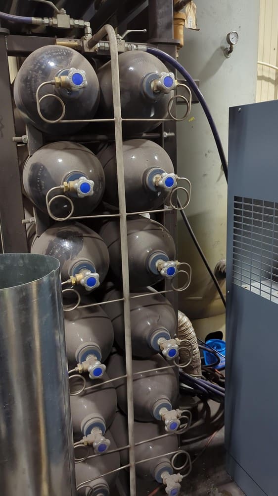 Cube 3(Self-Contained Unit), 2 Sets of Nitrogen Storage Tanks, and Atlas Copco Air Compressor