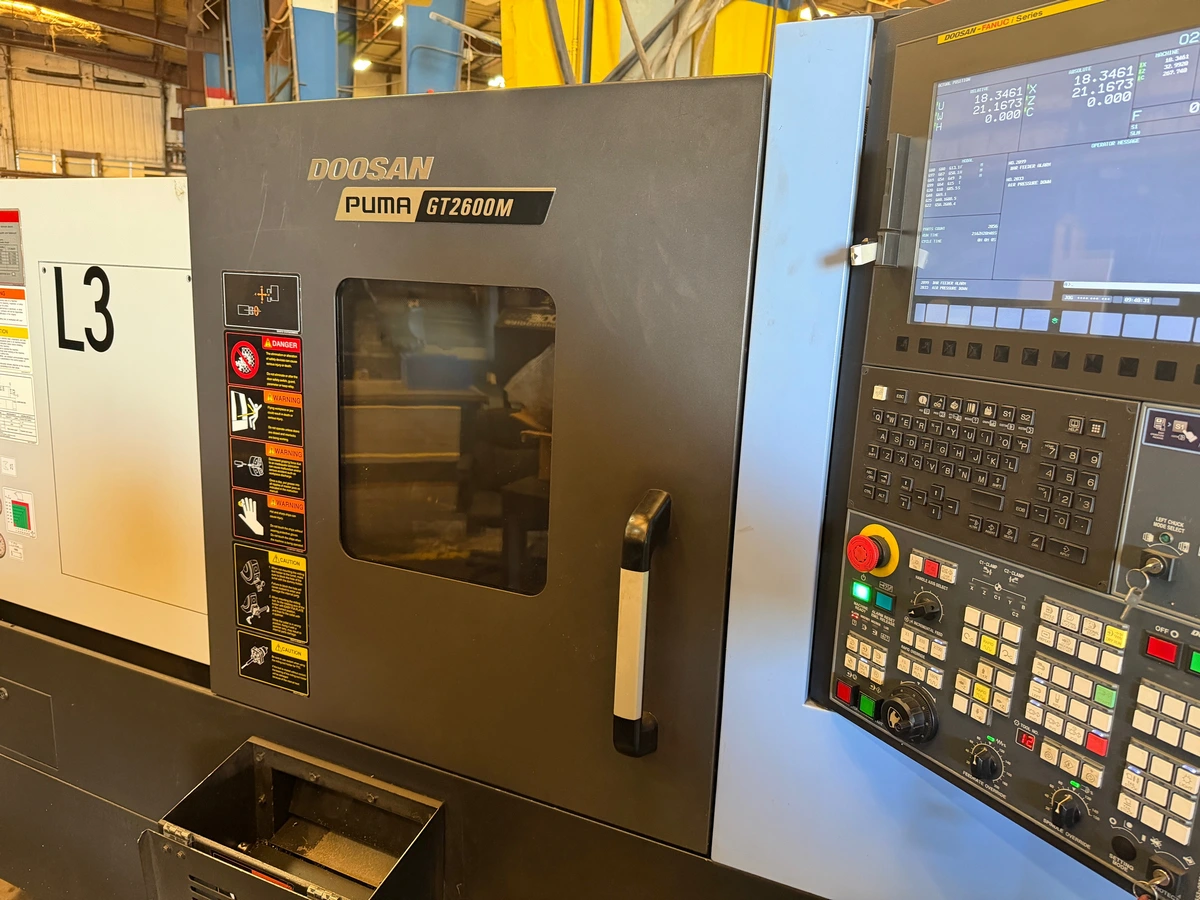 Used Doosan Puma GT2600M (2021) CNC Lathe for Sale.  This pre-owned Doosan CNC lathe is located in The United States and available to be seen under power for an inspection.  If you have any questions regarding this Doosan Lathe, please feel free to contact us.  You may Activate Pricing to view the price of this CNC Machine, or request a quote by clicking on the Inquire Now button.