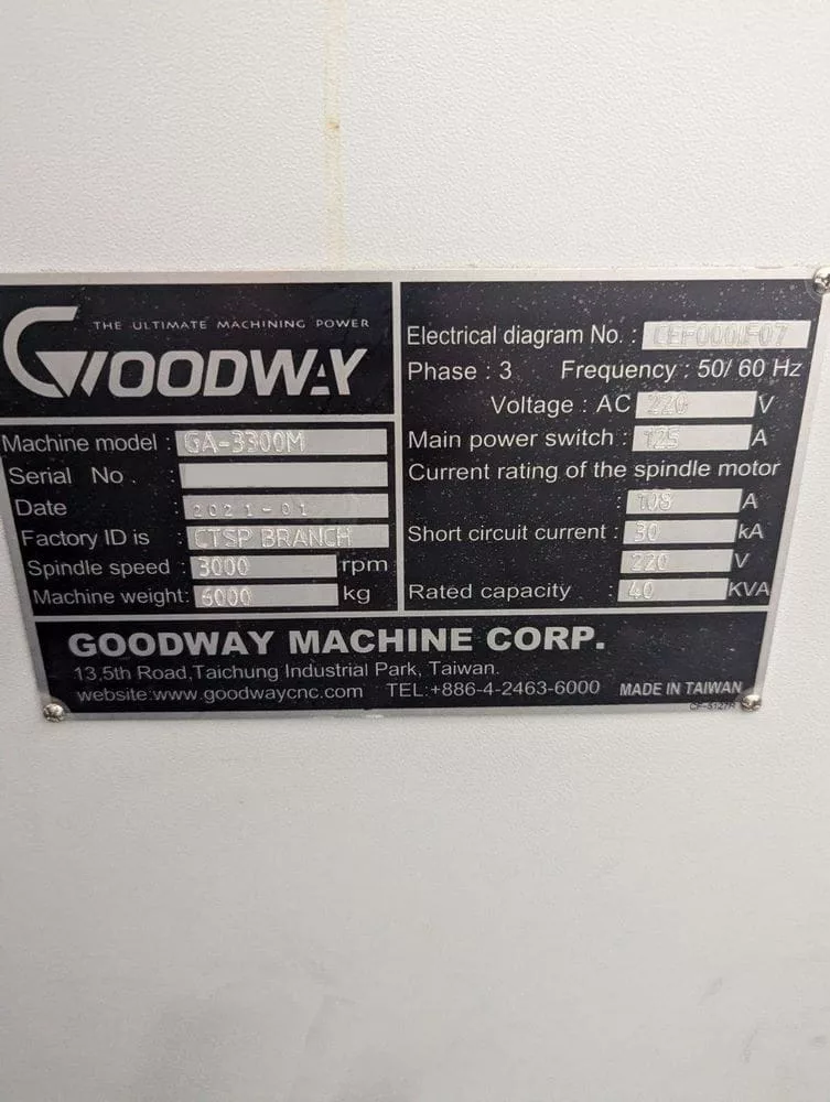 Used Goodway GA-3300M (2021) CNC Lathe for Sale. This pre-owned Goodway CNC lathe is located in The United States and available to be seen under power for an inspection. If you have any questions regarding this Goodway Lathe, please feel free to contact us. You may Activate Pricing to view the price of this CNC Machine, or request a quote by clicking on the Inquire Now button.