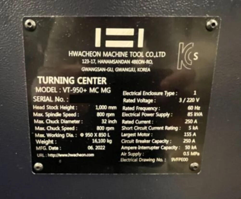 Used Hwacheon VT 950 MG/MC (2022) CNC Vertical Turret Lathe for Sale. This pre-owned Hwacheon CNC vertical turret lathe is located in The United States and available to be seen under power for an inspection. If you have any questions regarding this Hwacheon Vertical Turret Lathe, please feel free to contact us. You may Activate Pricing to view the price of this CNC Machine, or request a quote by clicking on the Inquire Now button.