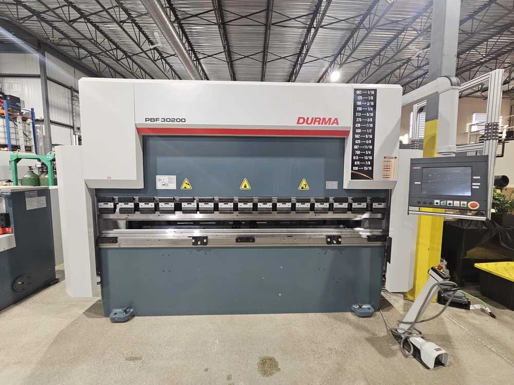 Used Durma PBF 30200 (2023) CNC Press Brake for Sale. This pre-owned Durma CNC press brake is located in Canada. If you have any questions regarding this Durma Press Brake, please feel free to contact us. You may Activate Pricing to view the price of this CNC Machine, or request a quote by clicking on the Inquire Now button.