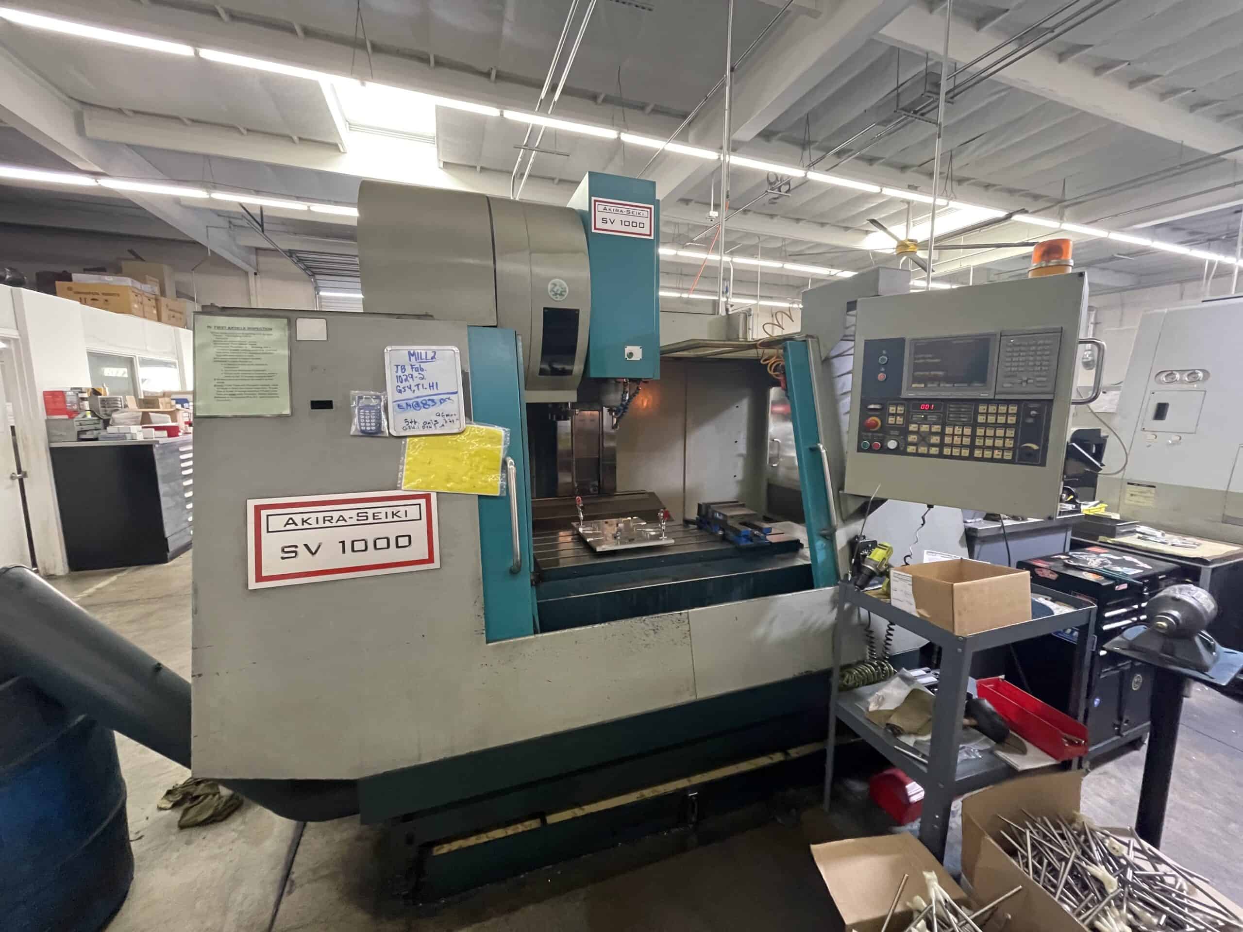 Used Akira Seiki SV1000 CNC Vertical Machining Center for Sale. This pre-owned Akira Seiki CNC vertical mill is located in The United States and available to be seen under power for an inspection. If you have any questions regarding this Akira Seiki Vertical Machining Center, please feel free to contact us. You may Activate Pricing to view the price of this CNC Machine, or request a quote by clicking on the Inquire Now button.