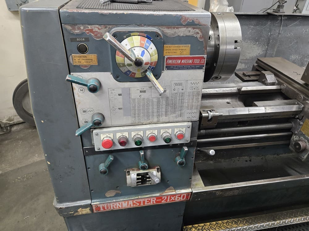 Used American Machine Tool Co Turnmaster 21×60 Engine Lathe for Sale. This pre-owned American Machine Tool Co engine lathe is located in The United States and available to be seen under power for an inspection. If you have any questions regarding this American Machine Tool Co Lathe, please feel free to contact us. You may Activate Pricing to view the price of this CNC Machine, or request a quote by clicking on the Inquire Now button.